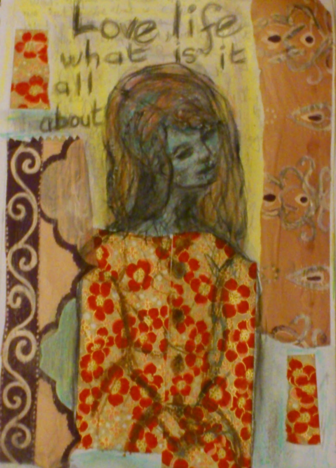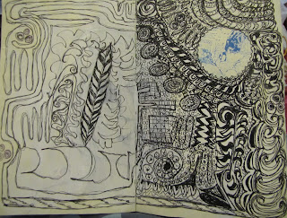 Gillian is also almost bringing us back to the basics. I do love that about what I am doing now. I am just drawing with different materials, pencils, charcoal, conte, stabilo marks all and crayons. It is a lot really. We are also using pastels which is one of Gillians' loves as well as her oilbars. I am not so sure but I am trying. I am making progress, I think. The pictures below are from my notebooks and can certainly see a difference with them.